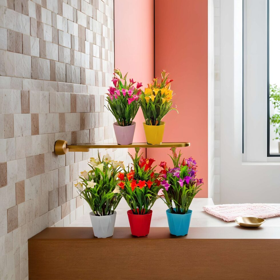 RANI’S CRAFTS Plastic Small Mini Set Of 5 Artificial Plant With Pot Artificial Potted Plants Set Of 5 Home Decor Indoor Small Plants Pot Flowers For Table Desk Decoration (RV-AP4) 🇺🇸 US$98.88